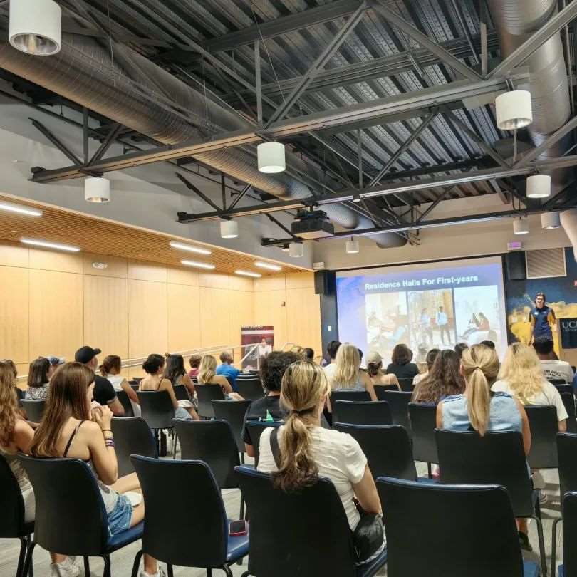 相比加州大学伯克利校区、洛杉矶校区,戴维斯是我们更有可能够到的学校。今天我们首先在学生中心听招生的讲座,由学校的学生志愿者进行讲解。我们还有一个惊喜,是遇到了之前的学长,他今天陪着我们逛了一遍学校。带队参观的大学志愿者全程英文,有时候听不懂的英文,学长会把重点的部分帮我们进行讲解。 ——Lee