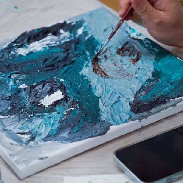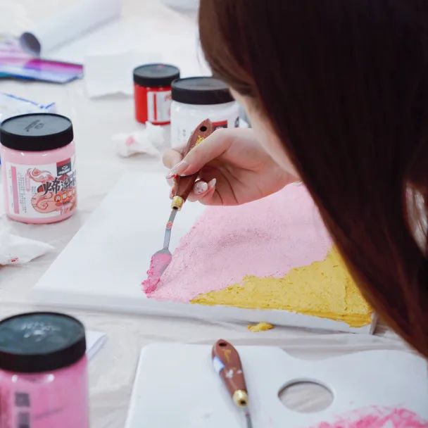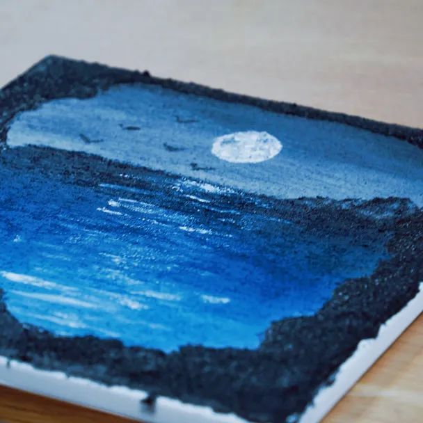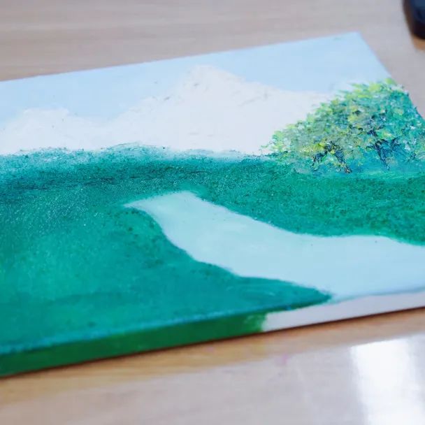 本期课程中,学生们学习了如何制作肌理画,从前期的准备工作到后期的添加色彩,他们独立完成了一副画作。肌理画的选题是风景画,依照同学们喜欢的风景进行构图。画画是一件耗时长、很专注的行为,同学们沉浸课堂其中,无法自拔。