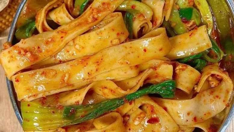 「凉皮」剔透禅意,冰凉如玉,油泼辣子和醋汁蒜水的味道组合,酸滑清爽。