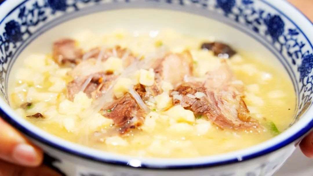 「羊肉泡馍」肉汤浓郁,烙饼紧实,大火烹煮,让这次相拥,余味悠长。