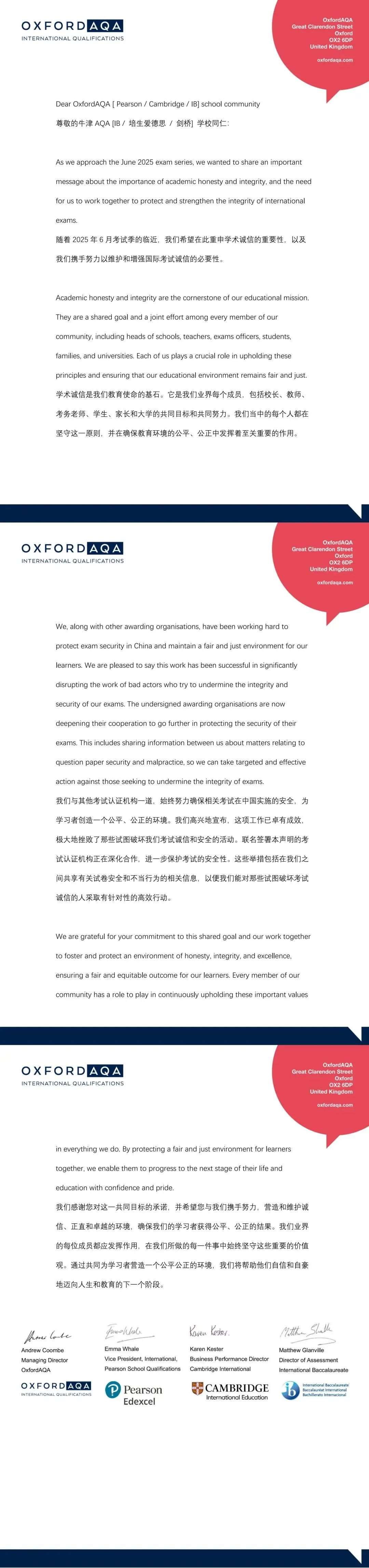 优藤关于牛津AQA考试局A-level夏季大考诚信宣言