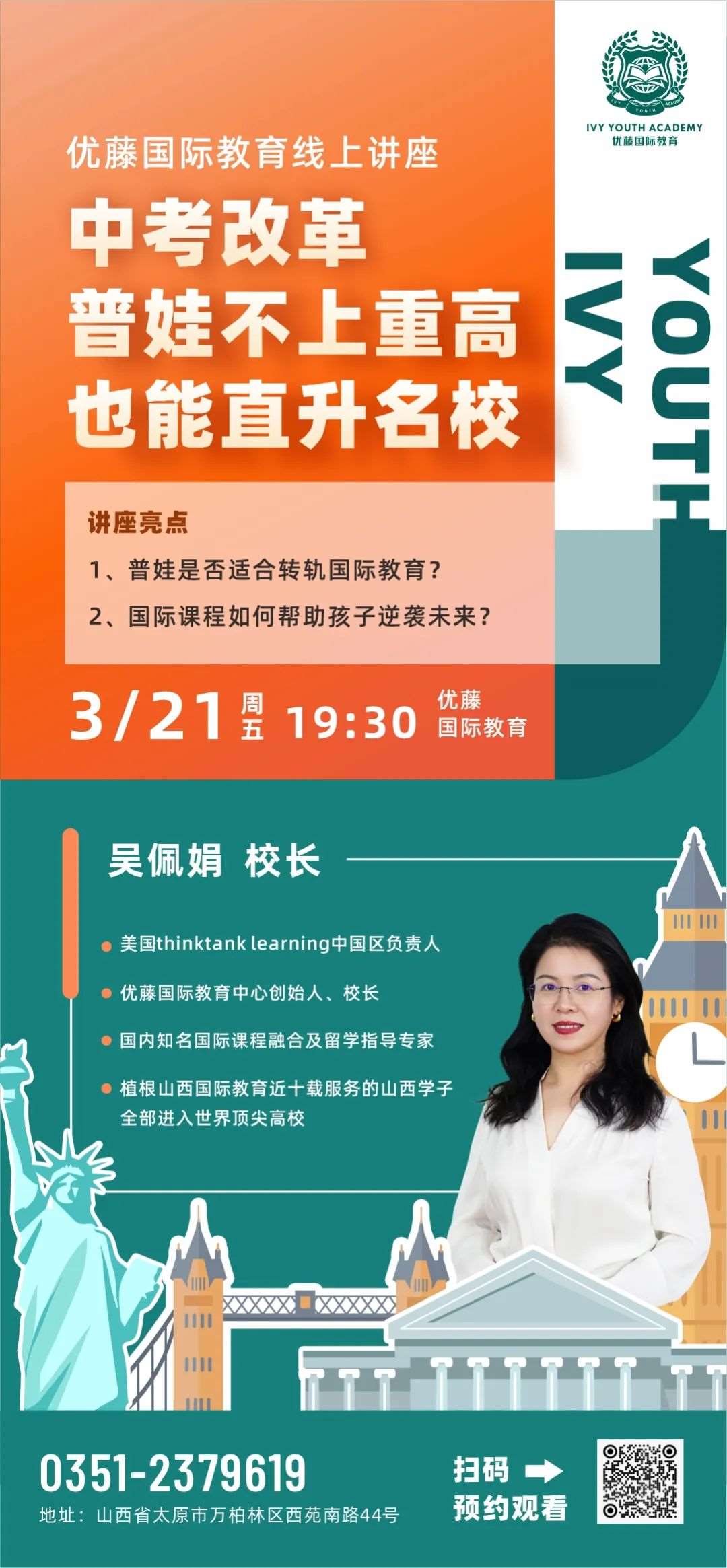 优藤国际教育中心(lvyYouth Academy),是山西真正融合国内外优质教育资源,由吴佩娟女士领导并打造的一支具备专业素养和丰富经验的升学指导教育团队,经过近10年研究总结,针对山西学子特点共同赋能的海外课程中心。