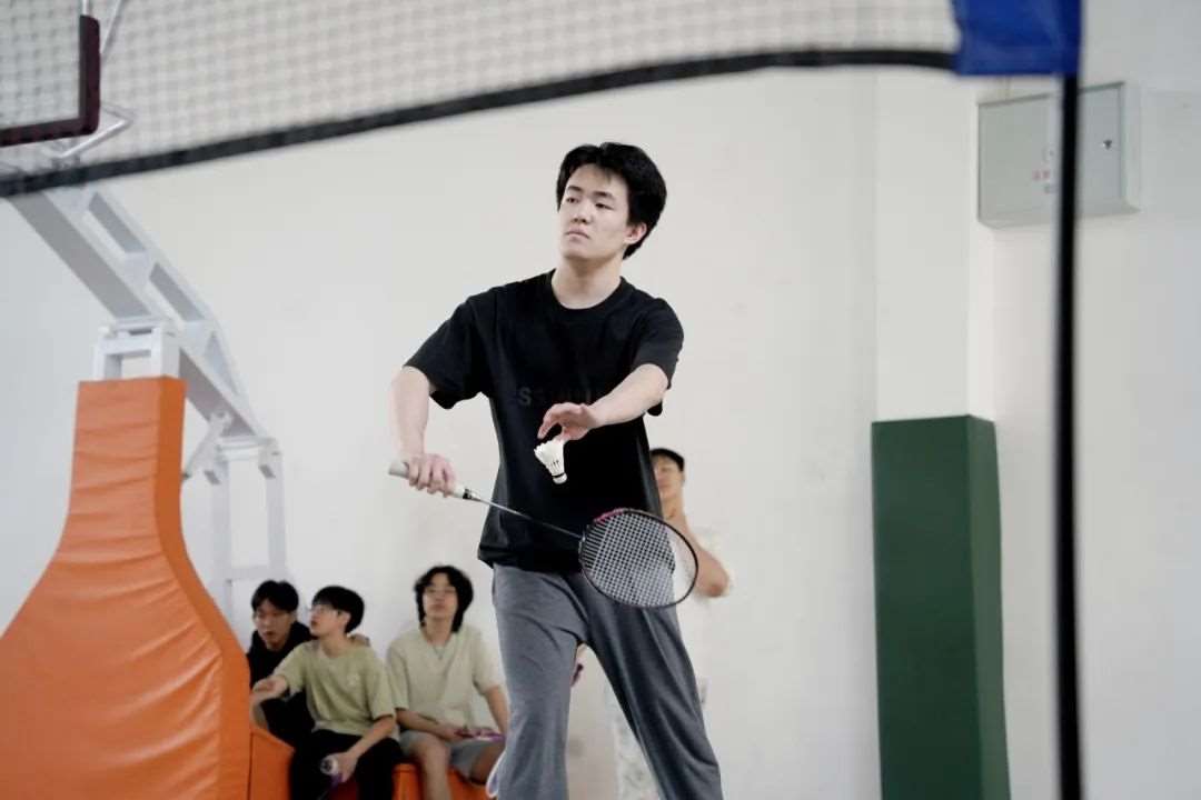 先进行的是男子单打比赛。参赛者每一次挥拍,都伴随着风声呼啸,白色的羽毛球在球场上空如流星般划过。Bob同学擅长进攻,一次次强有力的扣杀让对手防不胜防;Ted同学则以稳健的防守著称,巧妙地化解着对方的攻势,等待反击的机会。赛场边,同学们和老师们的情绪随着比赛的节奏起伏,每当出现精彩的回合,欢呼声和掌声便此起彼伏。